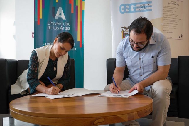 Justamente, en el convenio se indica como objetivo el trabajo colaborativo para el desarrollo de programas, proyectos y actividades conjuntas de formación, vinculación e investigación en artes, que contribuyan a la creación y circulación de productos culturales en beneficio de la ciudadanía guayaquileña y de ambas instituciones