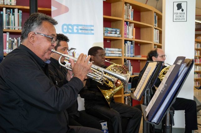 El acto solemne concluyó con la intervención del Grupo de Cámara de OSG y fue el experimentado músico y docente de la Escuela de Artes Sonoras de la UArtes, Eduardo Manzanilla, quien hizo la presentación de rigor y anunció los tres temas que interpretaron: “Guayaquil vive por ti”, “Strangers in the night” y “New York, New York”.