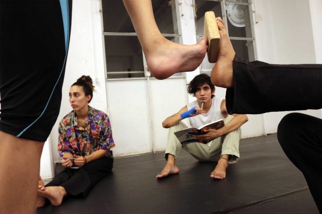 El trabajo lo dividimos en tres ejes: las relaciones entre los cuerpos en escena, las relaciones de los cuerpos con el espacio/tiempo y la activación de dispositivos creativos. Evidentemente, un encuentro de tres días y con la diversidad de personas que asistieron nos brindó muchísimo material sobre el cual reflexionar y continuar indagando, por eso en los siguientes laboratorios se abrirán nuevas líneas de abordar estas relaciones que enmarquen cada vez el deseo inicial de este proyecto de investigación.