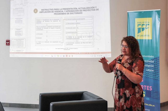 Organizado por el Vicerrectorado de Posgrado e Investigación en Artes, este martes 14 de marzo de 2023 tuvo lugar en la Biblioteca de las Artes la conferencia “Oferta académica para la formación doctoral en el Ecuador y sus perspectivas” y un taller de trabajo en el que se socializó la normativa para el diseño y procedimiento de aprobación de programas doctorales.