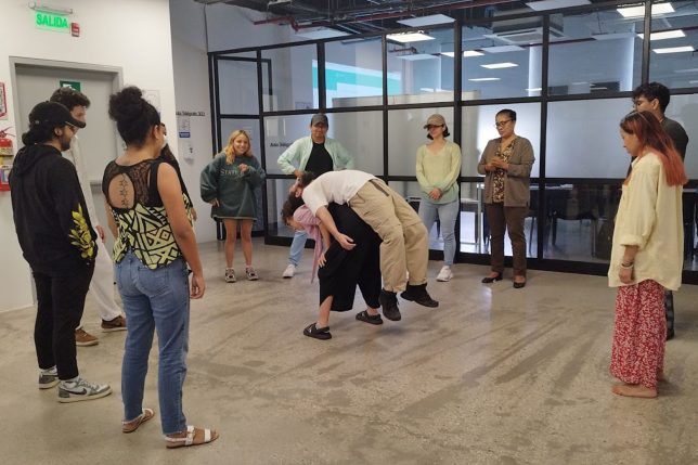 Y, la también alumna Melanie Alejandra Meneses en su taller “Contato Improvisação”.