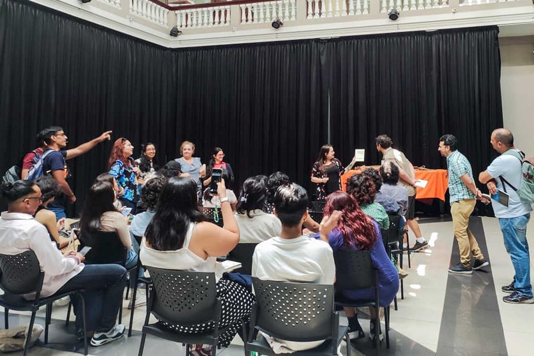 El punto de encuentro fue la Sala de Usos Múltiples del Pabellón Araceli Gilbert, a la que llegaron con un ejemplar envuelto para, mediante la dinámica de libro robado, intercambiarlo.