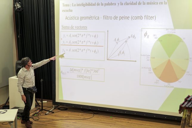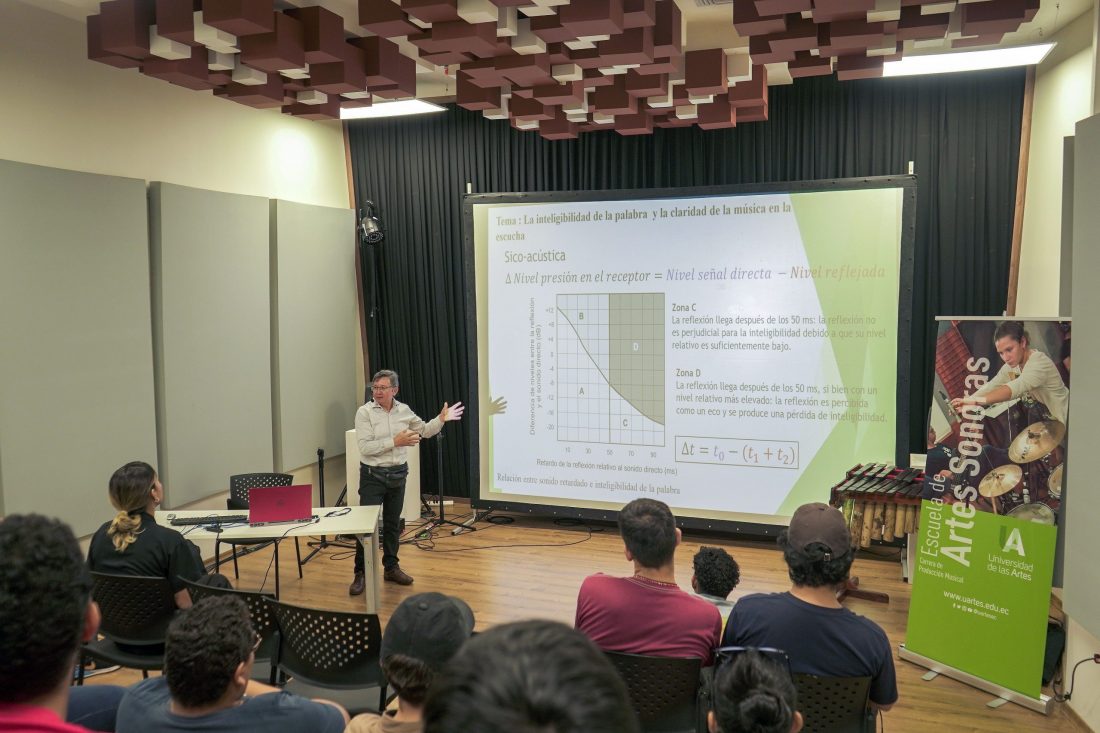 A través de la acústica vamos siendo objetivos con números exactos y precisos, anotó Segovia a InfoUArtes. “A través de la acústica nos topamos con todos los elementos para tener herramientas para trabajar; que sea un trabajo propositivo y sepan lo que están haciendo, de manera que controlen los factores acústicos para un trabajo eficiente y no que estos factores los controlen a ellos”, explicó en relación no solo a los estudiantes en su preparación académica en las Artes Sonoras, sino a los profesionales del audio y del sonido.