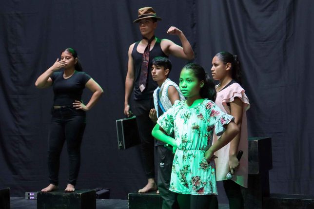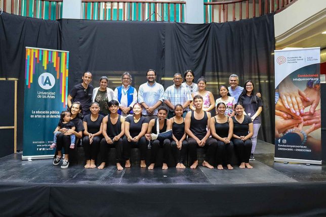 Ocho adolescentes de diferentes comunidades y organizaciones de Guayaquil integraron el elenco de “Un País”, una obra que la Fundación de Inclusión Social Psicoarte presentó este 12 de mayo en la Plaza Pública del MZ14 Centro de Producción e Innovación UArtes.