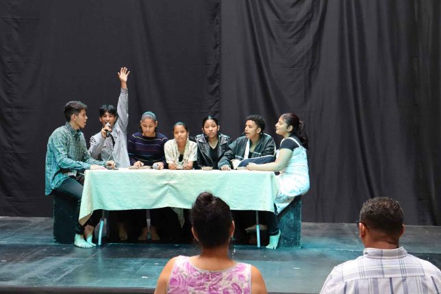 El texto de la pieza resultó de la creación colectiva de sus intérpretes, partícipes de un programa que cuenta con el apoyo de la Universidad de las Artes, en su vinculación con la comunidad, y Plan Internacional.