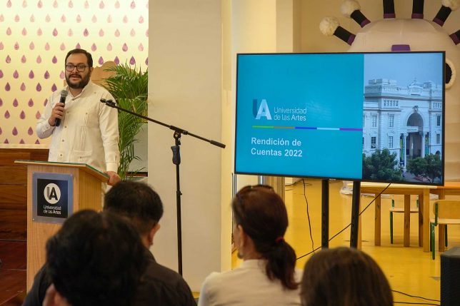 El rector de la Universidad de las Artes, doctor William Herrera, presentó el jueves 25 de mayo el informe de rendición de cuentas de la institución, correspondiente a enero-diciembre 2022. Se hacía, dijo, en apego a lo establecido en la Ley y las disposiciones del Consejo de Participación Ciudadana y Control Social (CPCCS), pero, sobre todo, como un ejercicio que permite a la UArtes y su comunidad detenerse y evaluar de manera crítica lo realizado y planteado en las agendas de trabajo para este año y los siguientes años de gestión.