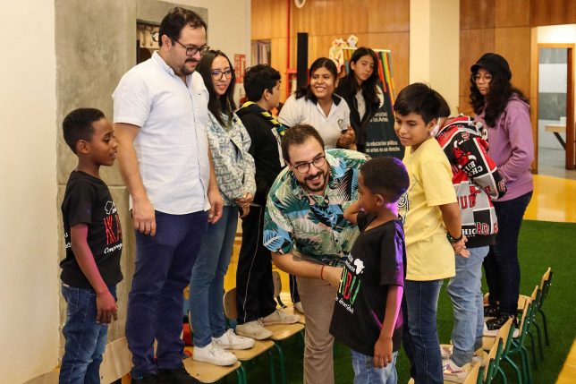 El rector UArtes dio la bienvenida a los niños y niñas de todas las edades que acudieron y les agradeció esa intervención. Indicó que la Biblioteca de las Artes y su Sala Ría son muy importantes para la universidad, pues permiten conocer lo que ellos buscan al acudir, que ansían, que desean y opinan de todas las actividades y los servicios que ofrecen, lo cual ayuda a mejorar. Tienen una característica especial, dijo, son públicos, es decir, que están abiertos a toda la ciudadanía, todos pueden acceder independientemente de dónde son, la edad.