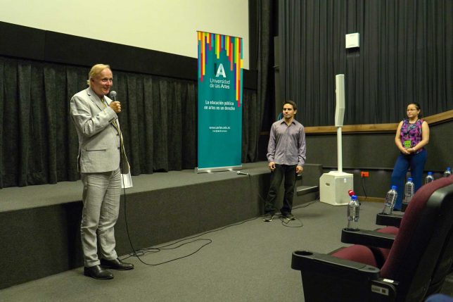 En respuesta, en su intervención el cónsul estadounidense anotó que era “un orgullo para nosotros estar afiliado con la UArtes, son unos socios fantásticos” y felicitó a nuestras autoridades, a los alumni por la muestra de documentales y al director de la Escuela de Cine, Pedro Cagigal.