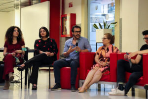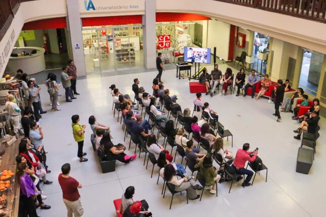 Junto con los maestrantes, en el diálogo participaron las doctoras Olga López y Diana Medina, vicerrectora de Posgrado e Investigación en Artes y directora de la Escuela de Posgrados, respectivamente. También docentes coordinadores de algunas de las maestrías UArtes. La comunidad universitaria y el público en general pudieron conocer en detalle el desarrollo de las propuestas de los artistas y luego recorrer los espacios expositivos.