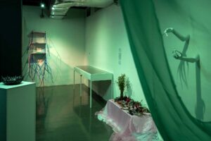 Con la curaduría de Ana Rosa Valdez y Cristian Villavicencio, coordinador de la maestría, “Prompt me/ si lo imaginas” busca estimular los diálogos entre el arte, las tecnologías, el cuerpo y la imagen a través de diversos medios y formatos: instalaciones, escultura, textiles, cultivo celular, joyas y performance, entre otros medios.