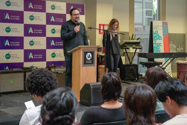 Agregó que hablar de localidad y tecnodiversidades y de los desafíos intelectuales, contemporáneos, sociales y reales que plantea el proyecto NEST “nos está marcando uno de los rumbos más fructíferos y estimulantes que tiene en este momento la Universidad de las Artes en el campo de investigación”. El rector hizo votos porque las jornadas del encuentro sean enriquecedoras para los participantes y asistentes a las distintas actividades. Dio también la bienvenida a quienes nos visitan.