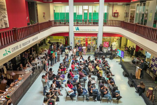 Tuvo lugar en el MZ14 Centro de Producción e Innovación de la Universidad de las Artes, donde hasta el domingo 6 se desarrollarán el simposio internacional, así como exposiciones artísticas, recitales musicales, cine, proyecciones audiovisuales, acciones poéticas, presentación de proyectos de investigación en artes, de procesos pedagógico-artísticos y de vínculo con la sociedad.