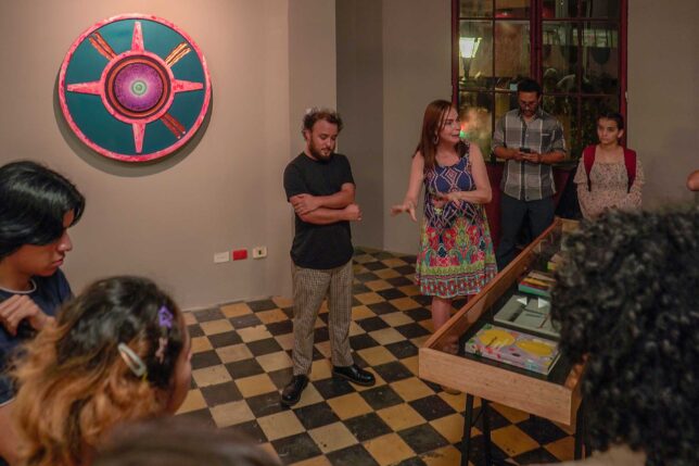 Un grupo de los artistas expositores viene de la Universidad de Nariño, de Colombia, como John Benavides, Heidy Carmona, Germán Monederos, Javier Gómez e Isabel Cortez, mencionó Gabriela Rivadeneira Crespo, titular de la Dirección de Política de Investigación de la UArtes. En las bóvedas, precisó, se encuentran las propuestas de Alexandra Sánchez e Ian Albino, las cuales fueron curadas por el artista y docente UArtes Christian Villavicencio.