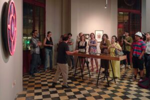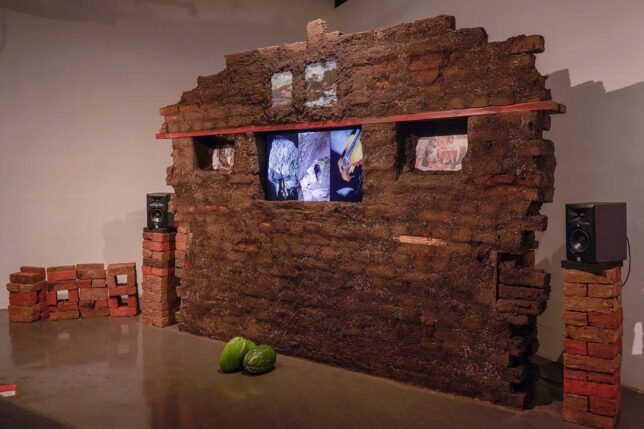 En la galería se pueden apreciar las obras “Por arriba corre el agua, por abajo las piedritas” de Miguel Alvear, Chopin Thermes, curada por Lupe Álvarez, docente UArtes. “El Siglo”, de Gabriela Rivadeneira Crespo y Hugo Idrovo. “Ecografismos panamazónicos”, de John Felipe Benavides, Heidy Carmona y Germán Monederos. “Tran(s)(c) itar agua”, de Javier Gómez e Isabel Cortez. “Inventario ilustrado de insectos híbridos Vol I-II”, de Alexandra Sánchez Alarcón e Ian Albiño. “Pistola lanza semillas”, de Juan Sebastián Bravo Carreño, Danna Garzón y María José González.