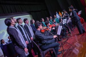 En el acto, al que acudieron otras autoridades universitarias y de la Secretaría de Educación Superior, Ciencia, Tecnología e Innovación (Senescyt) hubo también la presentación del coro de la Escuela Superior Politécnica del Litoral (Espol) y de un ensamble, en ambos intervino un estudiante de la Escuela de Artes Sonoras de la UArtes.