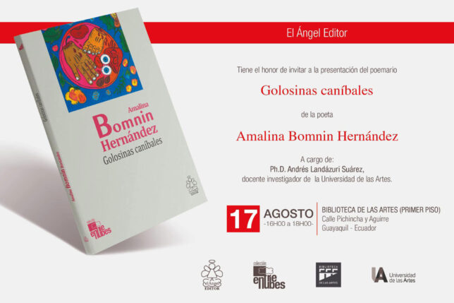 Experiencias, búsquedas frontales que desechan los estereotipos de toda índole, apetitos e infidencias de tres tiempos diferentes convergen en el poemario “Golosinas caníbales” de Amalina Bomnin Hernández, Ph.D., cuyo lanzamiento tendrá lugar este 17 de agosto, a las 16:00, en el primer piso de la Biblioteca de las Artes.