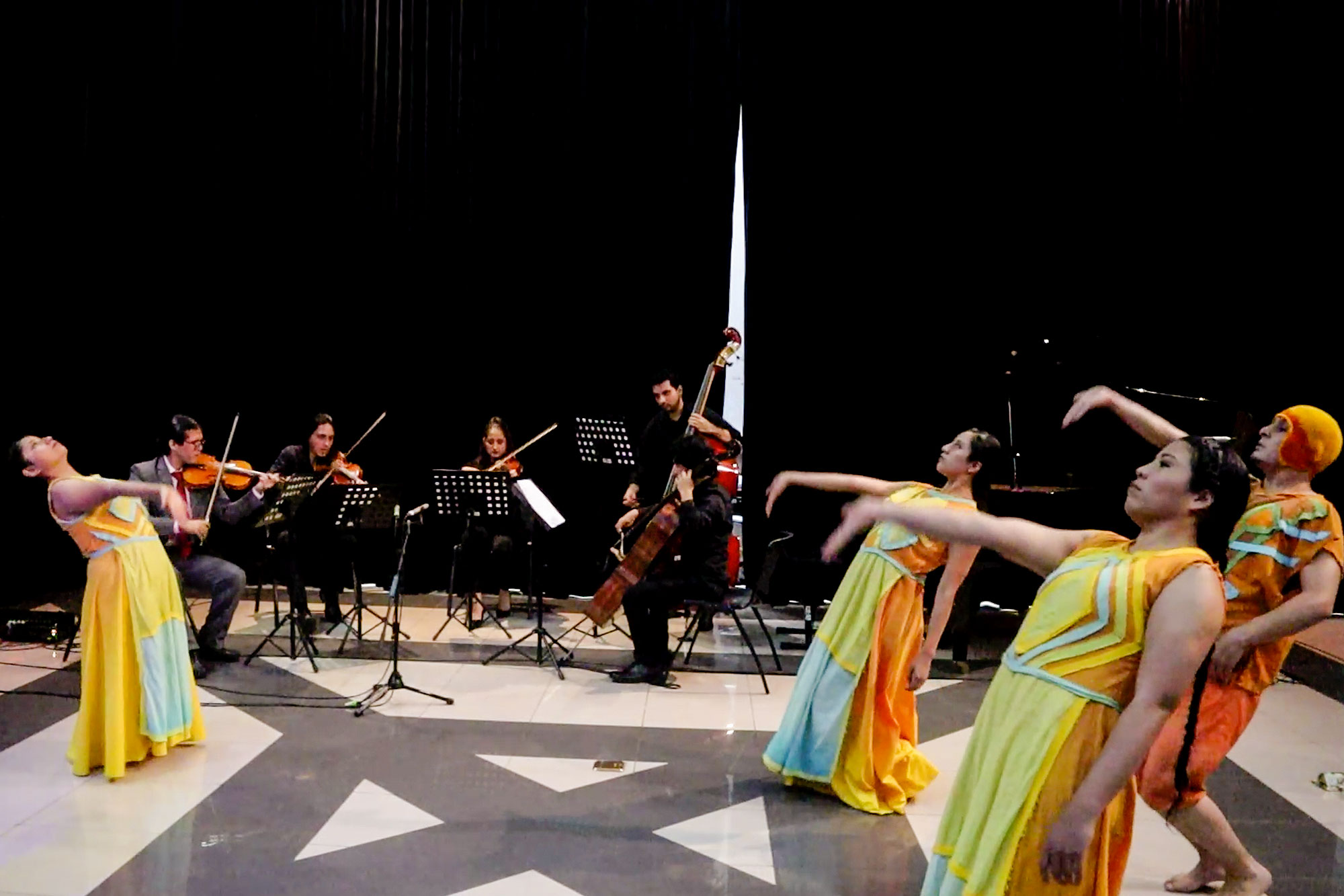 Para la interpretación de las piezas en mención, se contó con la intervención de un piano clásico, un contrabajo, un violín y cuatro jóvenes que mantuvieron la rítmica realizando patrones rítmicos con el cuerpo (percusión corporal). La primera obra, un performance con la participación del público. La segunda obra fue Yaku-Taki, primer danzante ejecutado con los músicos ya en escena. La tercera obra, Pacha-Taki, segundo danzante con los músicos en vivo. Y, la cuarta obra, Al-Bakuna, un albazo también ejecutado con la intervención de músicos en escena.