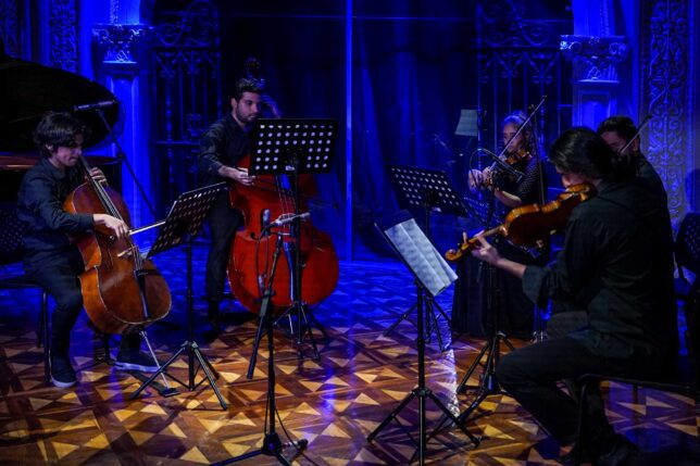 “Cuerdas Silentes” de Jorge Daniel Adum Molina, con la tutoría de Adina Izarra, se realizó el 18 de agosto en la Sala Experimentación Sonora de MZ14. Con este proyecto artístico su proponente rindió homenaje al cine silente ecuatoriano y a las comunidades de la serranía. Lo hizo con la creación de una banda sonora para musicalizar en vivo el documental silente “Comunidades Indígenas de la Sierra”, realizado en 1970 por la SENDIP (Secretaría Nacional de Información Pública) y que reposa en los archivos de la Cinemateca Nacional del Ecuador. Justamente; durante la presentación del cuarteto de cuerdas, el audiovisual fue proyectado.