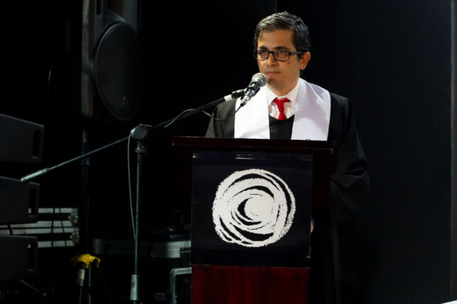 Durante la ceremonia, el rector del ITAE repasó brevemente los años de existencia de la institución. Mencionó a los artistas fundadores que hoy forman parte de la UArtes, felicitó a los docentes y alumnos por su compromiso y agradeció al rector Herrera por el apoyo recibido durante su gestión. Se enfatizó la importancia de las tecnologías vinculadas a las artes, pues posibilitan la articulación entre la idea, la teoría y la práctica. Reconoció, asimismo, el esfuerzo del estudiantado, cuyo denominador común es que la mayoría trabaja ya en el medio y busca por medio de esta oferta afianzar, expandir y legitimar sus conocimientos para el ejercicio laboral.