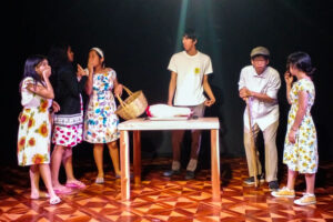 La imagen corresponde a la presentación de “Algo muy grave va a pasar en este pueblo” del Gran Teatro de Monte Sinaí (GTMS), registrada el pasado 11 de noviembre de 2023 en Libre Libro.