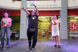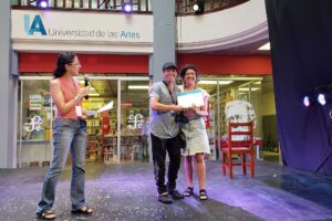 “Entregamos paquetes de cuadernos de la Fundación Hilarte y libros de UArtes Ediciones”, señaló la docente de Artes Escénicas, Carolina Pepper, quien de Fiesta comentó que su concepción no es la de un concurso, pues todos estamos en un proceso de aprendizaje. “La producción artística se ve en el hacer. Lo vemos como un proceso alegre y nada mejor que compartirlo a manera de fiesta. Nadie viene a competir ni hacer mejor que otro. Somos una fiesta tanto la universidad como los colegios participantes y con ese espíritu queremos que se comparta”.