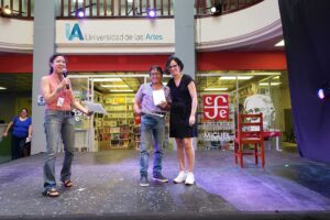 En esta jornada también intervinieron los alumnos de la Unidad Educativa Juan Javier Espinoza, cuyo grupo Anti-Genes presentó la pieza teatral “Quiebre a través del umbral” y la Unidad Particular Bilingüe Ecomundo con “El guardián”, obra basada en la película “The Lorax”, ellos obtuvieron un taller gratuito de Teatro.