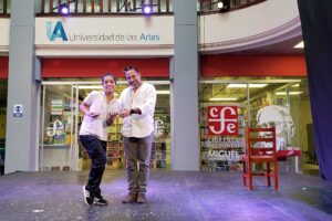 Omar San Lucas, docente a cargo del plantel Out of de Box Homeschool, se reveló sumamente emocionado por la invitación a participar en Fiartes-G. “Es la primera vez que participamos, nos arriesgamos a mostrar un teatro para chicos, lo cual casi no se ve”, dijo y ponderó el empeño de sus alumnos, así como la organización de “Fiesta” y la intervención de los estudiantes UArtes en la organización y logística.