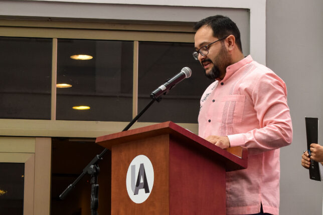 También reconoció el rector a los compañeros de limpieza y seguridad por su labor cotidiana y su trabajo al servicio de la comunidad; a las organizaciones e instituciones con quienes la UArtes ha podido activar agendas de trabajo y proyectos de investigación y vinculación. “Sobre todo, mi reconocimiento al estudiantado, a cada estudiante que tomó la decisión valiente de estudiar una licenciatura en artes, muchas veces sin el apoyo de sus familias, y que son quienes llenan de energía y de creatividad cada pasillo, aula y laboratorio de la universidad. Mi reconocimiento para todas y todos ustedes”.