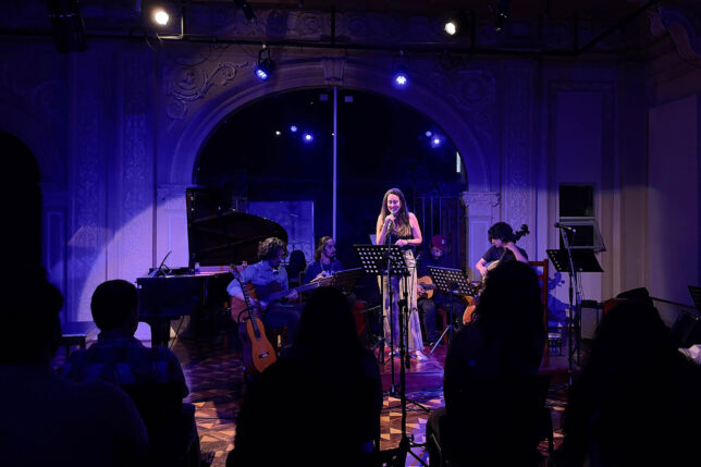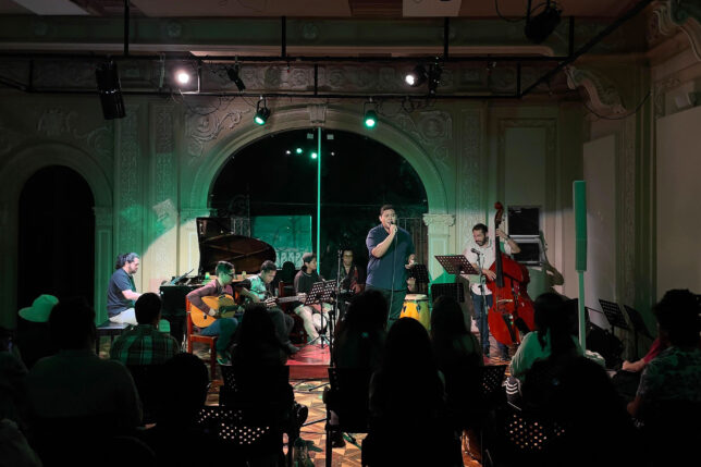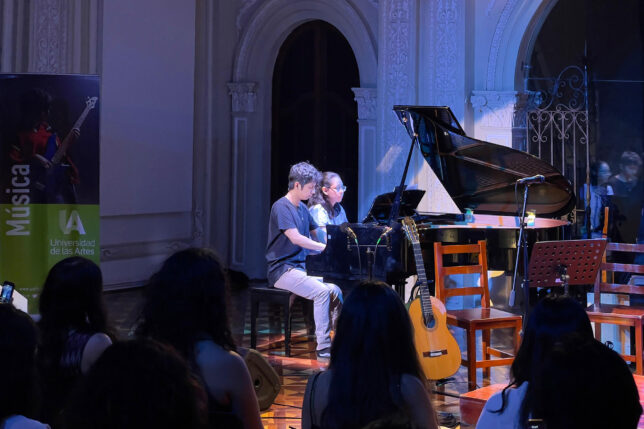 Fue la primera presentación del Jueves EAS de 2024 y la sola idea de reencontrarse para disfrutar del talento de estudiantes y docentes de la Escuela de Artes Sonoras hizo que el Salón Patrimonial del MZ14 Centro de Producción e Innovación UArtes completara su aforo.