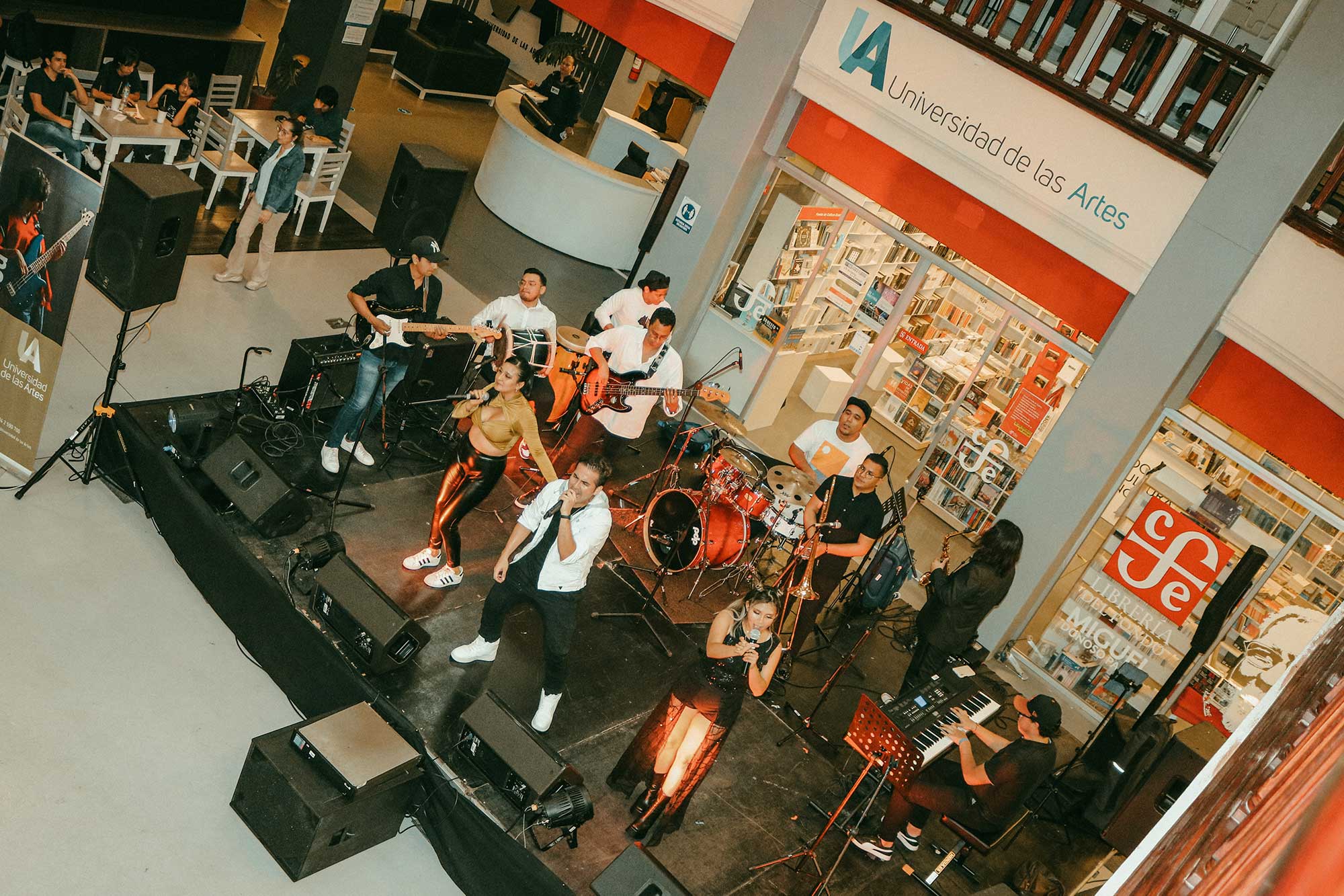 Organizado por la Escuela de Artes Sonoras, el Jueves EAS tuvo dos presentaciones en la Plaza Pública del MZ14 Centro de Producción e Innovación UArtes. El primero en subir al escenario fue el artista Gabriel González, quien brindó el concierto acústico “Indie al desamor”. ExplotionBand tomó seguidamente la posta para contagiar como su ritmo y energía a estudiantes, docentes y administrativos.