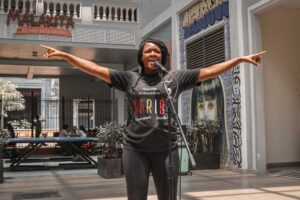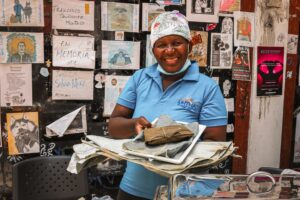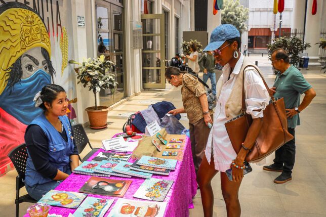 “El propósito de que cada una es obtener fondos para sostenernos, pues no tenemos apoyo para nuestra labor que es con y por nuestras comunidades”, expresó Caicedo y comentó que, en el caso de Karibu, se trabaja con más de 100 niños y 360 familias. “Nuestro ideal es que en medio de tanta violencia ellos no se pierdan y tengan otras alternativas de vida”. Recordó que con el apoyo de UArtes cuentan ahora con la biblioteca comunitaria Karibuleo, donde no solo se realiza mediación lectura, sino activaciones artísticas con grupos conformados por los propios habitantes del sector.