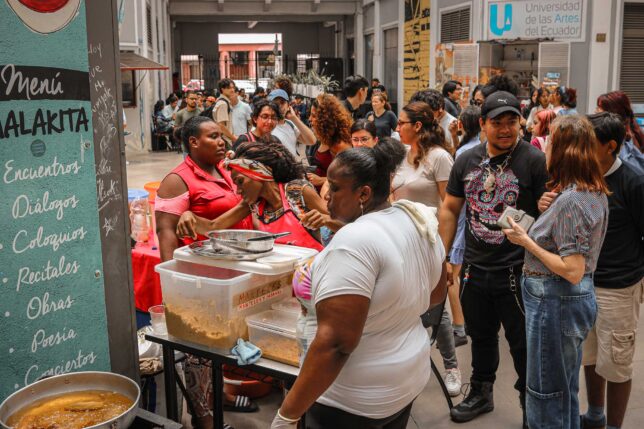 La Feria “Son, Sazón y Arrullo” se desarrolló en el campus centro de la UArtes, en el espacio Malakita, situado en la Gobernación. Forma parte del proyecto de vinculación con la comunidad titulado “Cocina Afroecuatoriana y Patrimonio Cultural: avivando la colaboración social y la resiliencia comunitaria a través del arte, la comida y la innovación”. La invitación al evento la extendió el Vicerrectorado Académico.