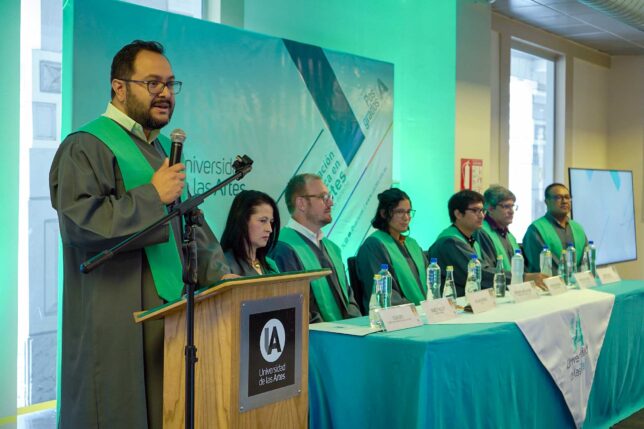 Mencionó también la entrega de los títulos de las licenciaturas en Artes Visuales y Producción Musical, en el marco del proceso de Validación de Trayectorias y acorde a la normativa establecida por el Consejo de Educación Superior, los cuales se daban como un reconocimiento a los artistas, a quienes agradeció por haber confiado en la Universidad de las Artes para desarrollar tan importante proceso.