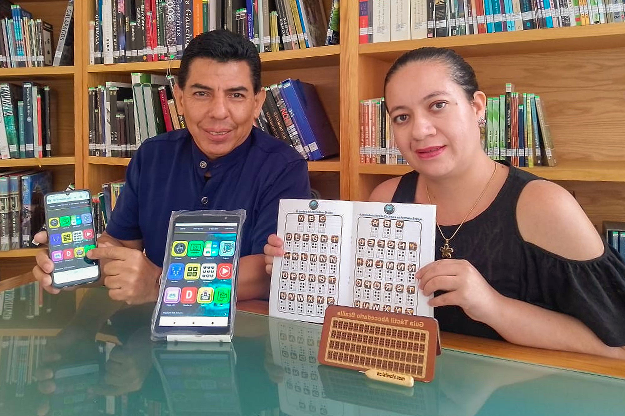 El “Manual de Lectura y Escritura Braille” es la herramienta base de la regleta Braille y del libro “Impreso en tinta y Braille”, por lo que se ha diseñado, configurado y diagramado cada uno de los códigos impresos del alfabeto Braille, vocales con tilde en Braille, vocales sin tilde en Braille, números binarios en Braille, signos matemáticos y signos de puntuación en Braille, los cuales se encuentran conectados por medio del código QR a la plataforma web inclusiva, que cuenta con un software que ayuda a leer las pantallas de las computadoras de escritorio y portátiles. También cuenta con otro software de escritura Braille, que ayuda a editar y crear documentos en Word, Excel, Power y Publisher, funciona correctamente con los editores o programas de fotos, como el programa Picasa, Photoshop, Adobe Ilustrator, etc.”, explica Lalinchi.