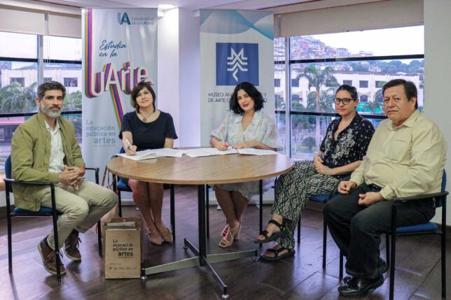 Intervinieron en la firma del documento la doctora Janina Suárez, titular de la Jefatura de Prácticas Pre-Profesionales de la UArtes, y la licenciada Stephanie Albán, directora ejecutiva del MAAC. Participaron también Ronny Ramos, analista de convenios nacionales de nuestra institución y por la contraparte, Heber Jumbo, responsable de la gestión Red de Museos del Ministerio de Cultura y Patrimonio (MCyP) y administrador del convenio, y Fiorella Zurita, responsable de asuntos legales.