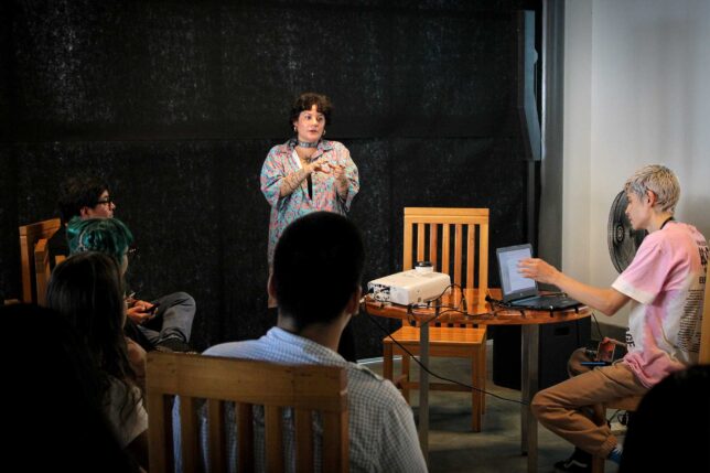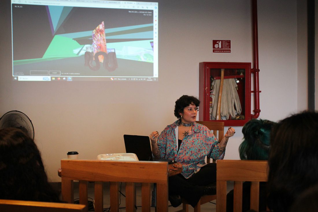 La actividad, que propició un conversatorio, fue parte del proceso de promoción de la maestría en Artes Visuales y Nuevos Medios que cursó y tituló Soria Díaz. En su desarrollo, la magíster hizo un recorrido a la metagalería y compartió con la audiencia –en su mayoría estudiantes– los procesos creativos del proyecto y la etapa de acompañamiento con Paulina León Crespo, docente del programa de posgrado UArtes y directora de Arte Actual Flacso, para la creación de la metagaleria producida por Cómo ser fotógrafa (CSF) en New Art City durante tres meses consecutivos.
