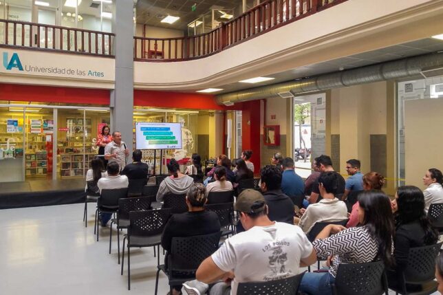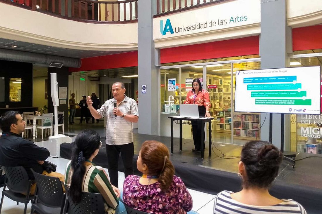 Los funcionarios y administrativos de la Universidad de las Artes participaron en un taller en el que socializó y sensibilizó sobre la Prevención Integral de Uso y Consumo de Drogas, la cual estuvo a cargo de los psicólogos Isabel Aroca y Gerardo Peña, del Ministerio de Salud Pública (MSP); se desarrolló el 6 de junio en la Plaza Pública del MZ14 Centro de Producción e Innovación UArtes.