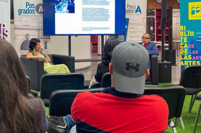 El lanzamiento de las maestrías de Gestión de la Cultura y de las Artes y de Artes Visuales y Nuevos Medios, con la participación de sus coordinadores: los docentes Ángela Arboleda e Ilich Castillo, respectivamente, junto con el director de la Escuela de Posgrados Cristian Villavicencio, dieron inicio a las varias actividades propuestas por la Escuela de Posgrado para dar a conocer la oferta académica de cuarto nivel de la Universidad de las Artes.