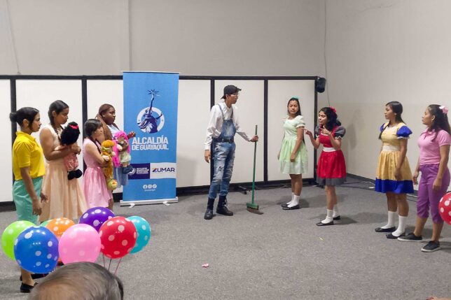 El grupo Gran Teatro de Monte Sinaí (GTMS), que integran niños, niñas y jóvenes de ese sector del Noroeste de Guayaquil y que dirige el docente Marcelo Leyton, presentó en el Centro Polifuncional Municipal Zumar Mucho Lote la obra “Historia de unas muñecas abandonadas”. El GTMS surgió del proyecto de vinculación con la sociedad de la Universidad de las Artes del cual toma su nombre.