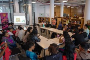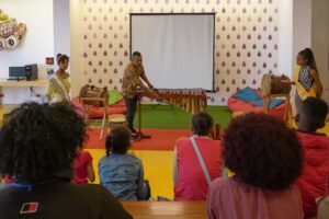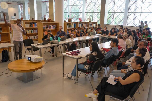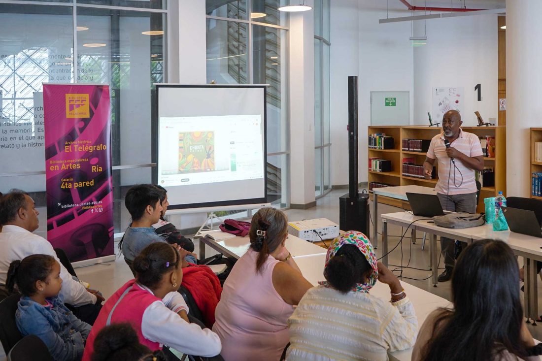 La intervención de Hernández tuvo lugar la mañana de hoy, jueves 18 de julio, en la Biblioteca de las Artes, seguida por la proyección del documental “Cimarrónicamente”, de la autoría de la docente Ana Carrillo, directora del Departamento Transversal de Teorías Críticas y Prácticas Experimentales; y la propuesta de integración infantil “Cuenta cuentos tradicionales de la cultura afrodescendiente”, a cargo de Jackeline Velarde.
