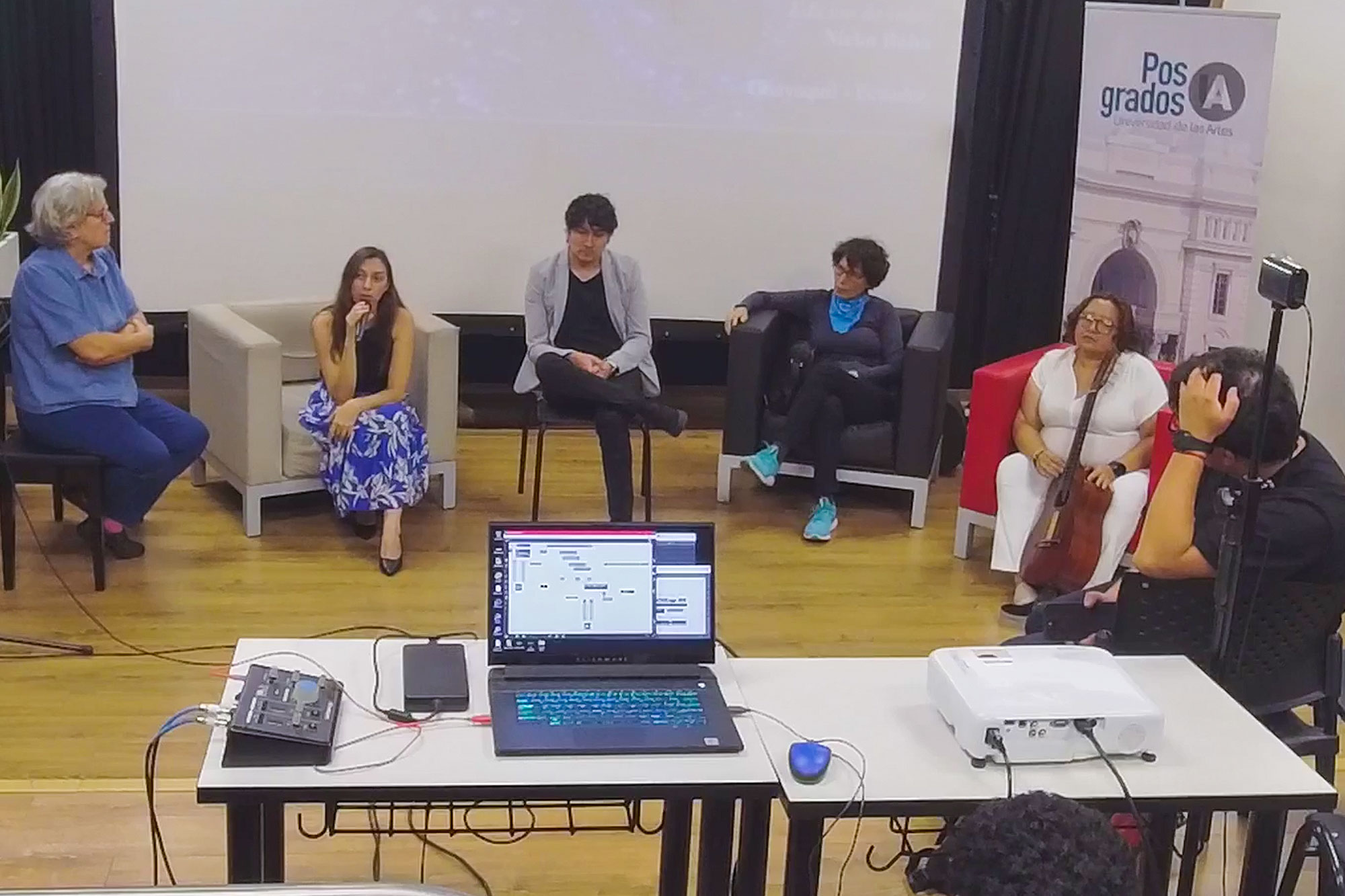Presidieron el acto Cristian Villavicencio, artista, docente y director de la Escuela de Posgrados, y Adina Izarra, coordinadora de la maestría en Composición Musical y Artes Sonoras, quienes hicieron énfasis de las diferentes narrativas y propuestas artísticas que plantea el programa de estudios.