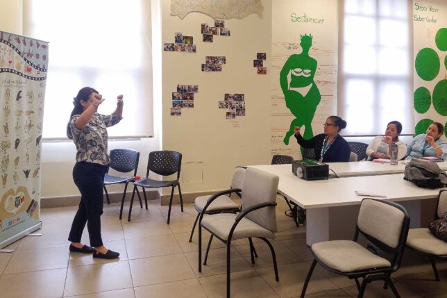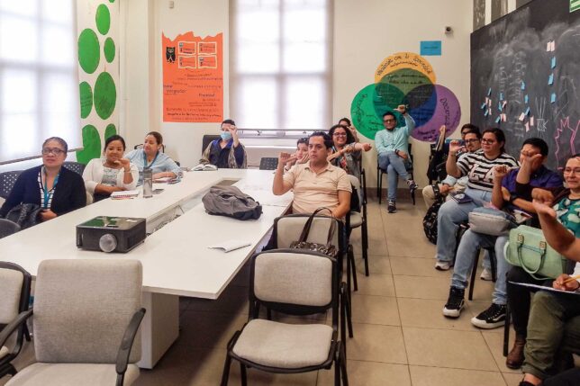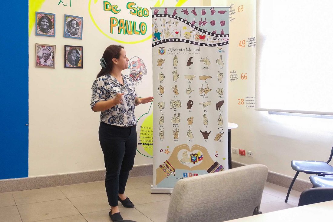 Atentos todos y también expectantes, en la jornada aprendimos que el abecedario manual de lenguas de señas no es universal, sino que varía por país –de allí la especificación de lengua de señas ecuatorianas– y que solo se usa para deletrear nombres, siglas, dirección y correo electrónico.