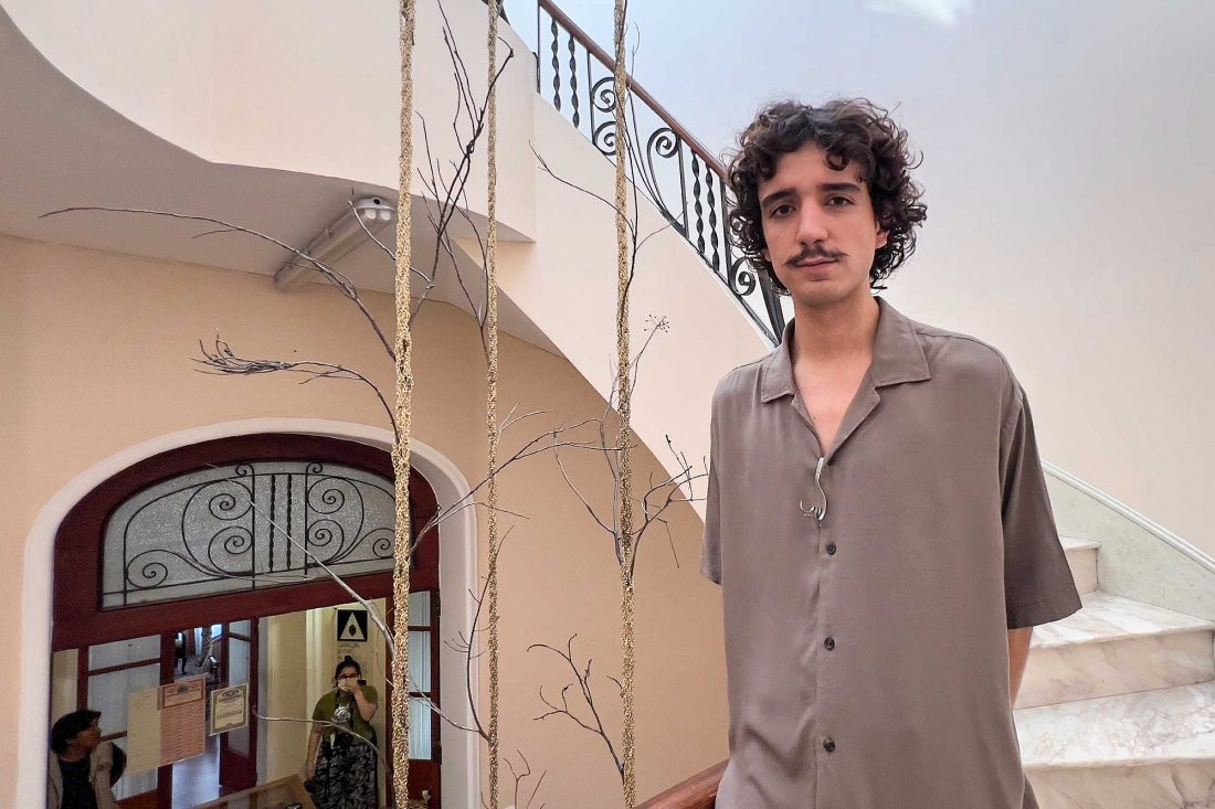 Al entrar el Museo Nacional del Cacao una de las instalaciones que recibe a los visitantes es “Quimera”, una pieza que cuelga de debajo de la cúpula y cae por el vacío de la escalera de caracol, generando diálogos con los espacios que habitamos y transitamos, sus elementos físicos, simbólicos y diversas complejidades. Su autor es Josué Miranda Vanegas, estudiante de la Universidad de las Artes quien artísticamente se da a conocer como Tue Miranda.