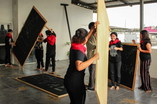 Para la propuesta, añadió Huayamave, se utilizó desde el teatro o desde la expresión física mucho de lo psicológico y emotivo, yendo hacia esa memoria de cada uno de los participantes e induciendo, en el buen sentido, las historias individuales. “Me atreví a esto que es más delicado –a trabajar con la memoria individual y con las emociones–, cuidando y conteniendo a cada participante para que puedan entrar en el ejercicio y salir ilesos, y teniendo muy claro aquellas cosas que encontraron en sí mismos y que son sutiles; esas emociones que están allí un poco cultas o que no queremos ver y que el ejercicio escénico nos permite indagar”.