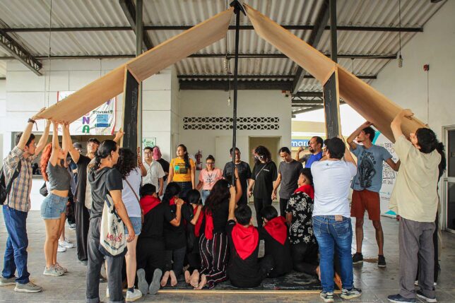 En Misión Alianza de Monte Sinaí, el artista Julio Huayamave, representante de Planthamé Sur Realidades, presentó los resultados de la residencia comunitaria que realizó en ese sector de Guayaquil. La desarrolló tras ganar la convocatoria pública que hizo para su tercera edición “Manglar 2024: Encuentros de arte, educación y espacio público”, evento organizado por la Escuela de Literatura y el Departamento Transversal de la Universidad de las Artes.