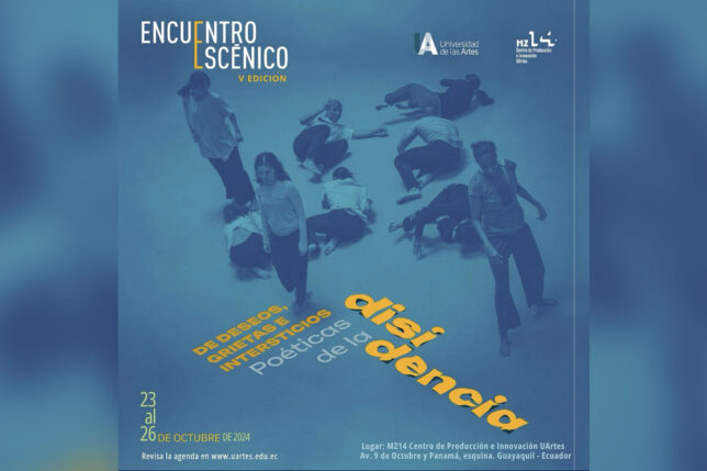 Surge y lo organiza la Escuela de Artes Escénicas, pero su perfil in(ter)-transdisciplinar abraza a toda la comunidad UArtes. Con los laboratorios “Síntesis de una performatividad”, de la mano del artista ecuatoriano Julio Huayamave, y “Rituales de resistencia: quebrantar la colonialidad de las cuerpas y la memoria”, del boliviano Edgar Soliz, arrancó hoy, martes 22 de octubre, el V Encuentro Escénico, cuya inauguración será mañana, miércoles 23, y mantendrá hasta el sábado 26.