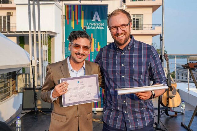 En esta misma línea, Pérez agradeció a los docentes UArtes delegados a integrar la Comisión Interinstitucional en Artes: Leslie González, Manuel Sarmiento, Christian Masabanda, Tatiana Ugalde, Roberto Ramírez, Fernando Montenegro, Bernarda Ubidia, Andrey Astaiza, Saidel Brito y Xavier Patiño. “También a los docentes externos en quienes nos apoyamos para llevar a buen término este proceso: Geovanny Narváez, Christian Hidalgo, María Sol Rosero, Cristina Marchan, Juan Carlos Astudillo, Iván Rodrigo, Alexis Zapata, Víctor González, Billy Soto y Alonso Veloz. Todos ellos tuvieron en sus hombros la difícil tarea revisar con minuciosidad las evidencias, rúbricas, argumentos y valorar las producciones artísticas que se postularon”.