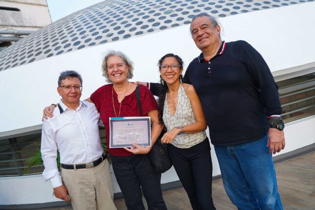 La vicerrectora de Posgrados e Investigación en Artes, Olga López, hizo la entrega de los certificados de Obra Relevante en el campo de Artes Musicales y Sonoras a los docentes: Luis Pérez-Valero, por “Yacare”, “Cuadernos de Buenos Aires” y “Ggye Pandemic”; María Grecia Albán, por “Mamahuaco”; Diego Uyana, por “Big Band Suite”, “Invocación” y “Bonsoir Stephanie (pasillos para piano)”; Adina Izarra, Meining Cheung, Ángela Arboleda, Carolina Pepper, Rubén Riera y Pedro Segovia González, por “Cuentos de Posorha”.