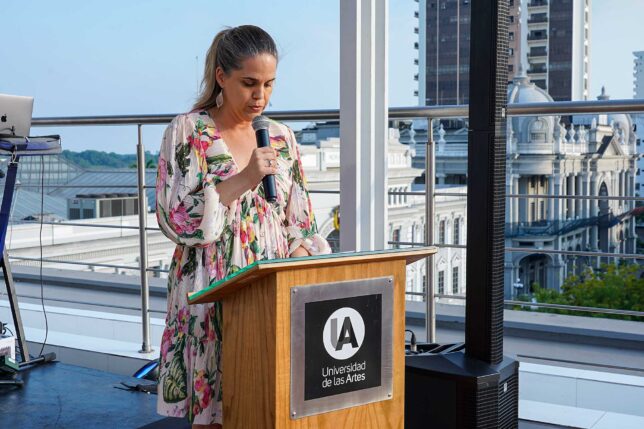 En su intervención, nuestra vicerrectora de Posgrados e Investigación en Artes, doctora Olga López, señaló al reconocimiento como un estímulo a la investigación y a la creación, y reflexionó en que tenemos que seguir pensando en ese trabajo que se materializa en una producción artística y tiene un impacto a muchas escalas: docentes, universidad y acreditación. No es solo reconocer, sino entender quiénes están produciendo creación artística y cómo eso va a impactar el país, dijo.