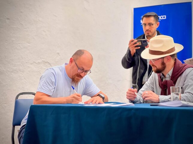 “Nuestra identidad o la base de nuestra identidad está muy marcada por estas culturas. Venimos del mestizaje, pero la base de la pirámide de nuestra identidad son estas culturas”, reiteró. Al momento del diálogo con InfoUArtes, Roberto Moscoso ya había participado junto con los otros residentes artísticos en la firma de un convenio con la Dirección General de Cultura, Recreación y Conocimiento, donde se comprometieron, entre otros puntos, a brindar charlas y talleres a la comunidad, así como exponer de manera conjunta los resultados de sus trabajos durante la residencia.